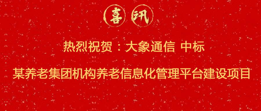 中標喜訊 | 熱烈祝賀大象通信中標某養老集團機構養老信息化管理平臺建設項目